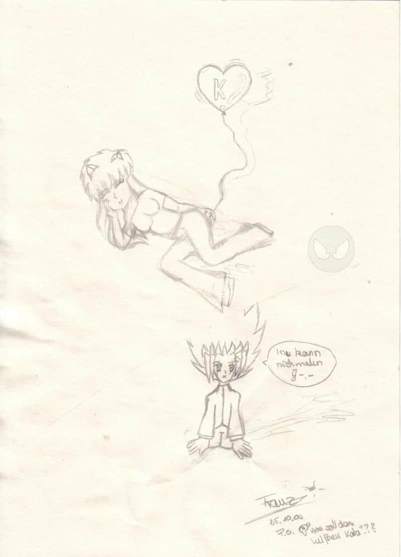 SORRY!!!! So lange ist es schon her, dass ich mal ein Bild hochgeladen habe... Ich finde einfach kaum Zeit dazu *gg* Tja^^ kann ich auch nichts dran ändern... Aber nun zum Bild^^ Es zeigt mich und K... K...! K... *namen nicht sagen kann* Mist.. ich kann ihn nicht sagen... Naja... Bald werdet ihr es wissen... Das Bild hat 15 Minuten gedauert.. ungefähr... naja... Sagt mir, wie ich mich verbesern kann^^ THX für eure Kommis^^