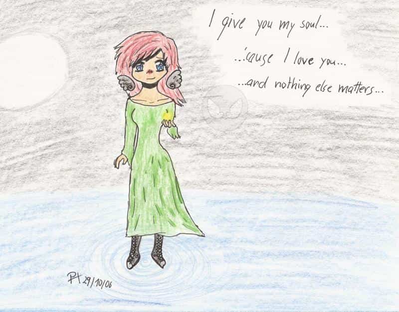 sööö, frisch aus england zurück und direkt mit nem neuen bildschän! <333 ich mag ihr gesicht und die hände sind wohl ganz gut geworden ... allerdings sind die füße ein wenig zu klein... und naja die proportionen sind mal wieder im eimer xD naja...und die (von mir aus gesehen) rechte hüfte/taille is ein wenig eingedötscht...und der hg is sinnlos... die skizze is auffer fahrt nach england entstanden, inspiriert von "Nothing else matters" von Apocalyptica (natürlich gecovert^^) alsö, freu mich über eure kommiiis und hoffe dass ihr zu meinem gecolorten engel/teufel bild auch noch ein kommi dalasst! *lieb guck* aloHä, da pia/SaorSa