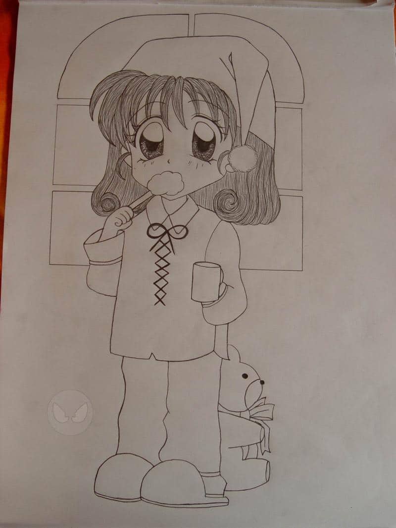 makrönchen beim zähneputzen im schlafanzug x3 hach einfach niedlich!eine a3 zeichnung für mein bad,die ich aber noch bunt machen will und werde!