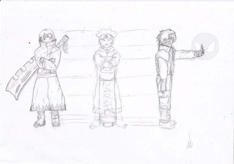 o.O ich hab gemerkt es tauchen so viele bilder mit naruto oder über dieses anime.. na ja bei mir ist es einbisschen anders, ich wollt nur versuchen ob ich noch was kann… ähmm das ist so versuch für mein hp, -> für mein neues hp xDDDDDD also zum bild … is nur skizze und hab aus naruto versucht neue ninjas machen… xD""