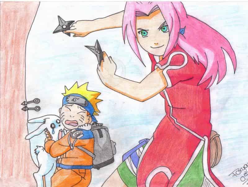 Das ist ein Bild von Sakura und Naruto.(und ein kleines Häschen, was vor schreck starr ist).