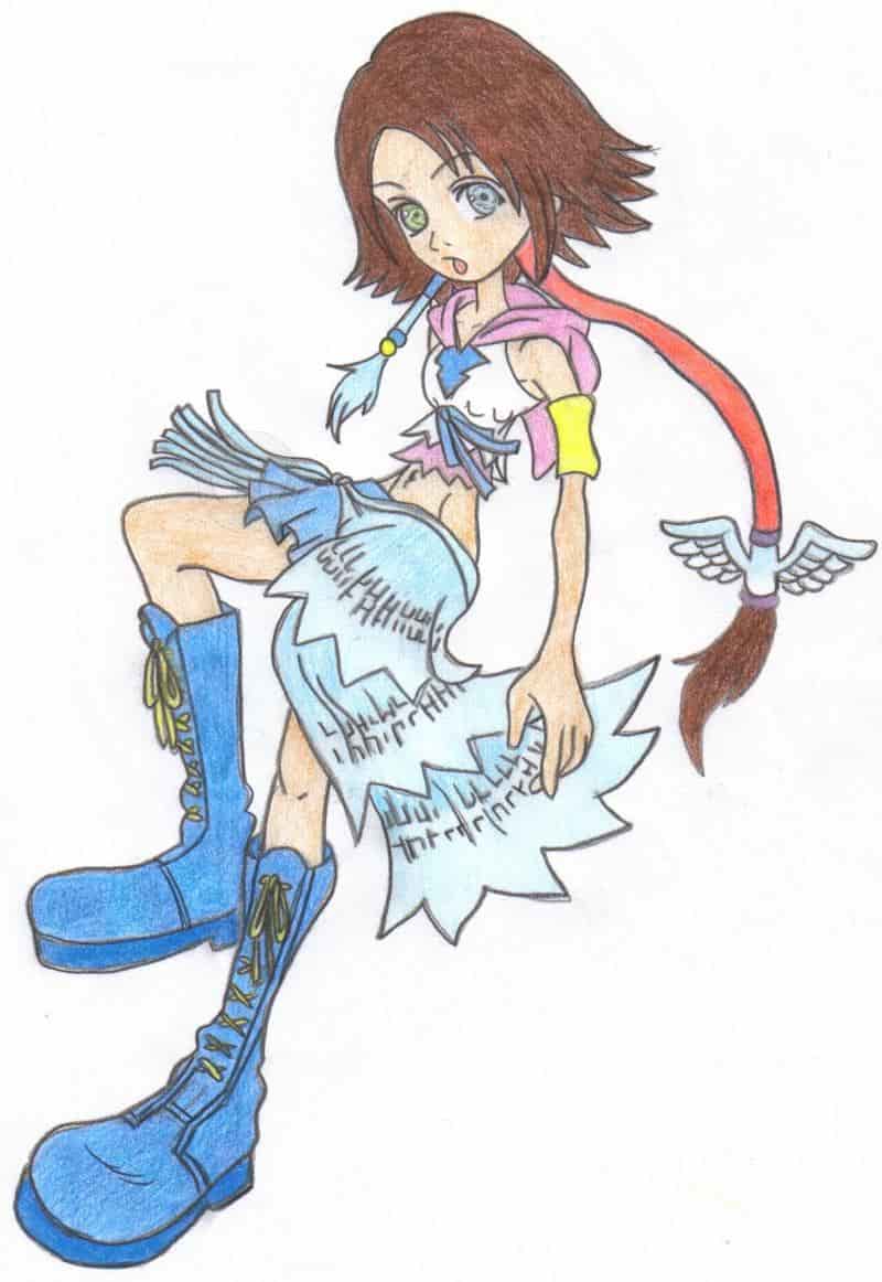 Also das ist ein Bild von Yuna aus FFX-2.Das Bild ist abgemalt wie ihr gesehen habt.(Ist ja viel im Internet zu finden)Ich habe ihr ein grünes und blaues Auge gemalt weil sie ja normaler weise eins hat aber auf dem Original war das nicht so.Naja ich weiß nicht ob es euch so besser gefällt.Könnt es mir ja sagen...