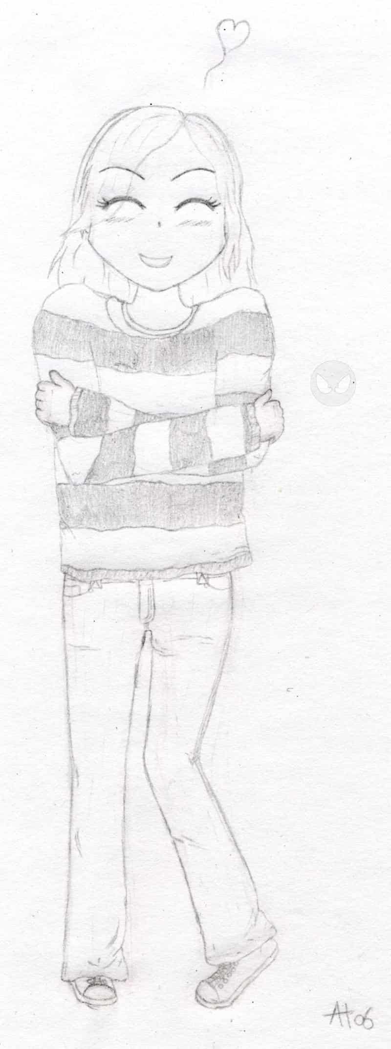 ich mal ja nur noch mit Bleistift :D jaa... ehm.. ich mag Streifenpullis x] (der grün-grau-gestreifte Pullover :D ne Elisa? <3) nuja.. die Beine und Füße sind etwas klein geraten, aber na ja.. xD hoffe es gefällt euch trotzdem :3