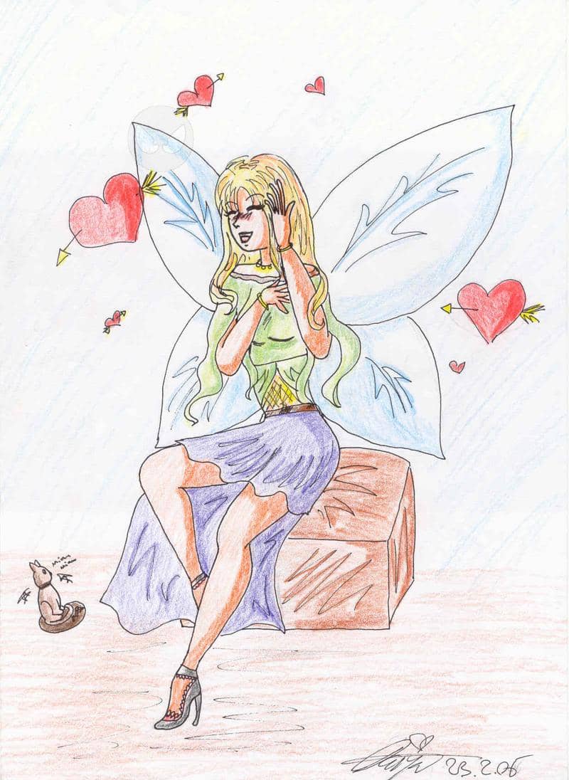 eine fee die wegen dem kleinen Spielzeugkätzchen lacht^^