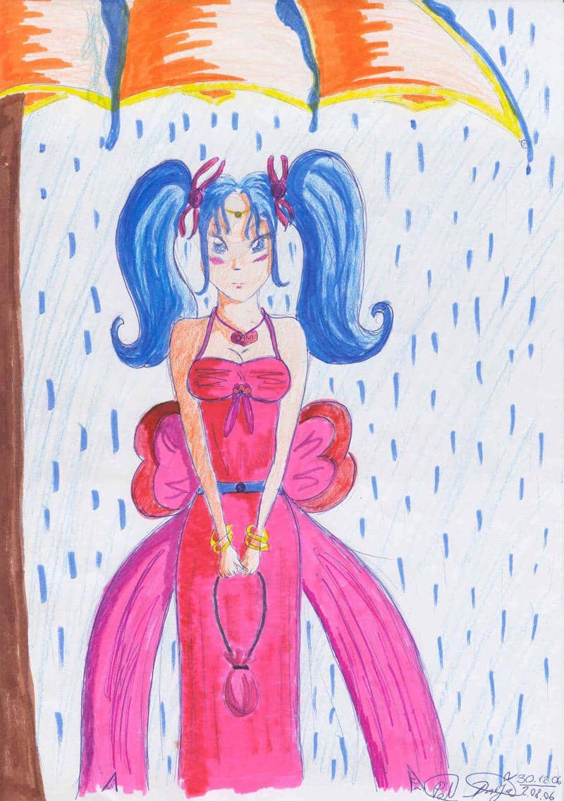 die schöne unter dem regenschirm