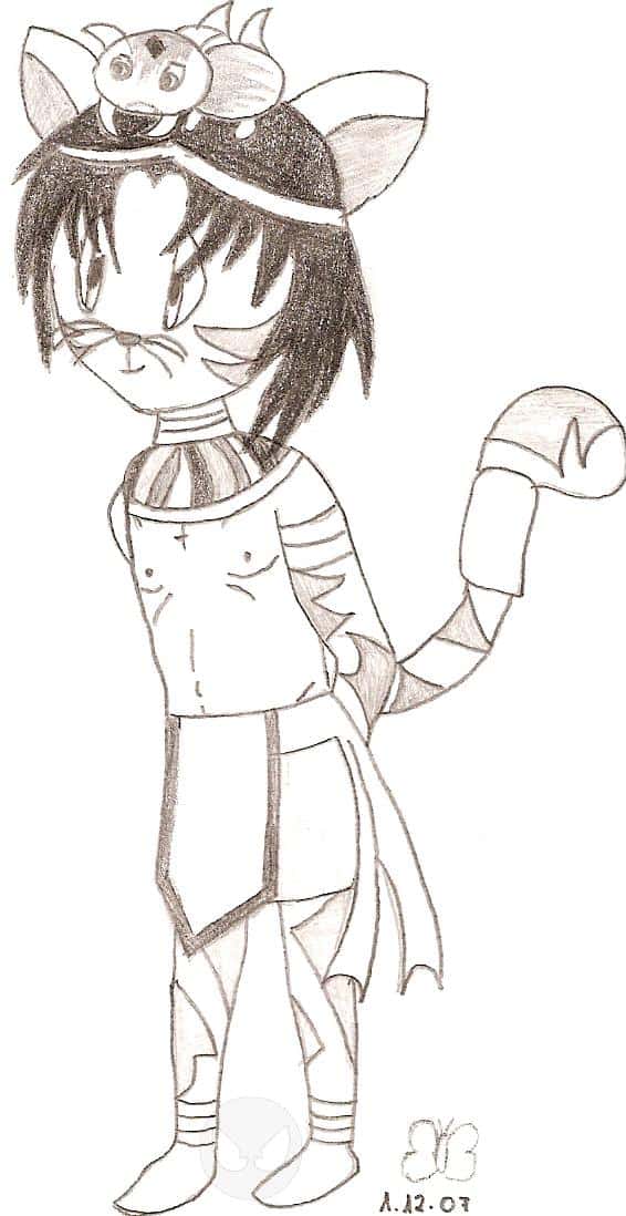 Das ist mein Neopet Chepren als kleiner Prinz mit seinem PetPet Seqen auf dem Kopf.