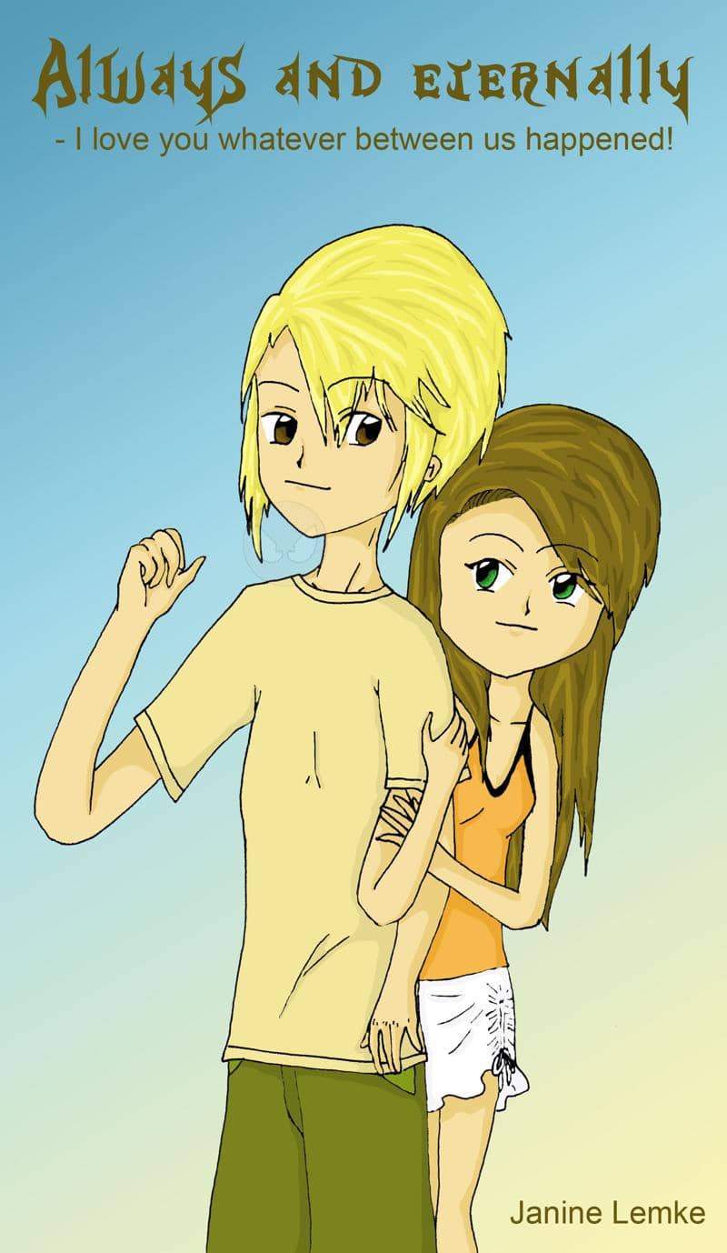 Also so soll das Cover meines Mangas aussehen...naja falls der irgendwann mal fertig werden sollte...hab erst 6 Seiten...egal also an dem Colo von diesem bescheuerten Bild bin ich ewig gesessen schon allein an den Haaren von ihm hab ich fast 3 Stunden oder mehr gesessen...am schnellsten giengen glaub ich die Shirts von dem beiden die waren nich sonderlich schwer...naja hab mit dem Bild gestern irgendwann um 10 oder schon früher angefangen hab da bis um 2 dran gearbeitet und heut noch ca 2 Stunden also mh naja die Haare sind nich sehr toll die muss ich auf jeden Fall noch irgendwie anders machen aber ein andermal jetzt hab ich genug von dem Bild das hab ich jetzt schon lang genug vor den Augen gehabt...achja ein paar Fehler sind hier und da auch noch drin aber ich hoff da fällt nichts großes auf^^...ich hoff ich bekomm nen paar nette Kommis und ne gute Bewertung^^