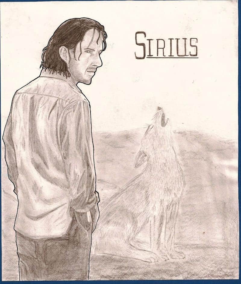tja, wie gesagt. das soll sirius sein. ich sah mich mit einem problem konfrontiert, als ich bemerkte, dass in meinen kalender unbedingt sirius rein muss, ich aber nict wirklic shcöne männer zeichnen kann. dann dact ic mir, scaust du mal, was du für bilder hast, auf denen ganz übsche kerle sind. ironischerweise fand ich ralph fiennes ser passend, der im film ausgerechnet voldemort spielt. aber der hatte gerade diese sirius aura für mic, also hab ich ihn abgezeicnet. allerdings hat sirius ja normalerweise längere haare, auf dem bild atte der kerl aber iemlic kurze... ich hab die also selbst gezeichnet. so sehn sie auch aus... vorher mochte ich das bild, aber jetzt..... ich habs doch tatsächlich geschafft ralph fiennes zu verunstalten... --* der wolf/hund dingens daneben is irgendwie auch mofig.... ich mag das fell überhaupt nicht.