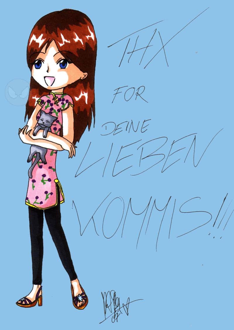 Sooo also für deine gaaaanz lieben Kommis hab ich dir nen Bildschen gemalt^^ Ich hoff es gefällt dir ich hab das mal wider mit Copics gemalt...und ich hoff man erkennt die Katze aufm Arm..naja mehr wüsst ich nich dazu zu sagen nur 1 noch...nochmal vielen vielen Dank für die lieben Kommis!!^^