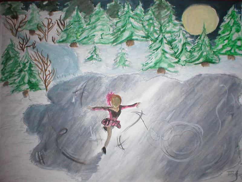 Ihc wollt mal inbedingt was mit Aquarell ausmalen, und dafür hatte ich da auch gezeichnet. Nya. Die colo hab ich heute gemacht. Die Zeichnung ansich liegt bestimmt schon nen Monat in meinem Zimmer *sich erst noch Aquarellen anschaffen musste* Hoffe es gefällt euch. Hatte zwar ein paar Bilder von Tannen mit Schnee ausgedruckt um zusehen, wie sowas eigendlich aussieht, aber Kleidung&co. hab ich mir selbst ausgedacht! Die Eiskunstläuferin ist nicht soo doll, aber besser konnt ichs nicht. Das Bild musste ich fotographieren, weil es im Din A3 Format ist, hoffe aber, dass das Foto nicht all zu schlecht geworden isr ~.~