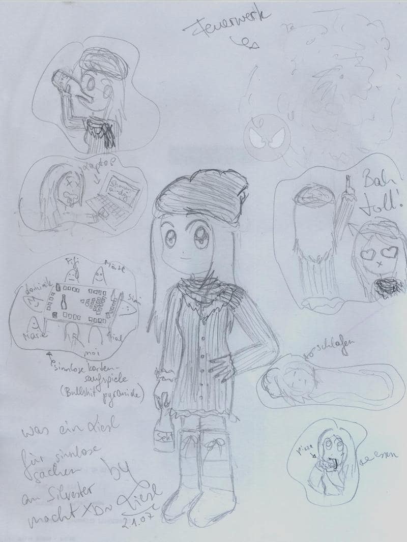 alles was ich an silvester gemacht hab war: schlafen, essen, feuerwerk bewundern, um mitternacht sekt getrunken, bullshit-pyramide gespielt(des is so a saufspiel) und n shonen-ai-dojis auf mexx lesen