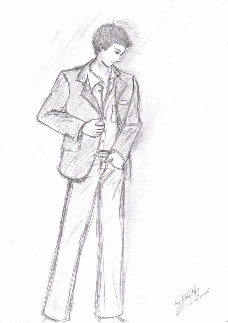 Das ist lediglich eine Skizze. Ich wollte mal was neues zeichnen und hab mich an verschiedenen Kleidungsstilen ausprobiert. Hier ist es ein lässig-elegant gekleideter junger Mann.
