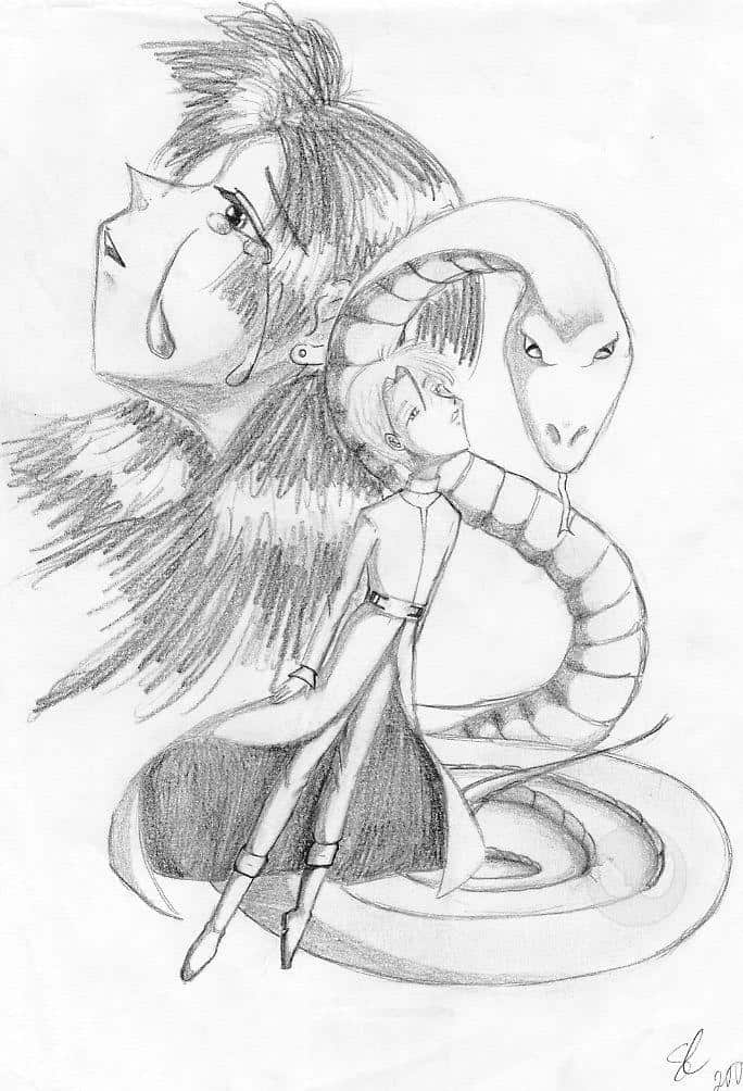 Ursprünglich sollte die Schlange ein Drache werden, doch so gefiel mir das besser.
