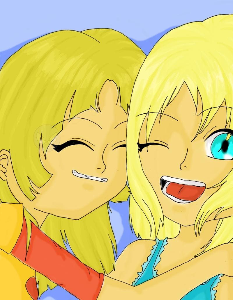 Ja also das hab ich zum Geburtstag von meiner Schwester und 2 meiner besten Freundinen gemalt...ja also meine Schwester is nich drauf die is auch nich so wichtig und ja rechts is Sreni und licks is Lisa...die Haare von Sreni sind besser geworden als die von Lisa bei ihr hatte ich den dreh noch nich so ganz raus