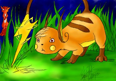 Langsam senkte das Raichu die Spitze seines schweifens, es war hoch konzentriert, und als es das Gras verührt entlud es seine ganze Ladung Elektrizität, wobei es nicht merkte das dadurch ein erstauntes Vulpix in die Luft flog.