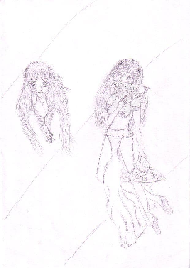 Die Haare! Ach ja, anders. Gut. Aber nicht gut genug verdammt! *mit faust in die hand schlag* Aber sie passen zum Wind! o….0 Ich habe auch einen Fächer gezeichnet!