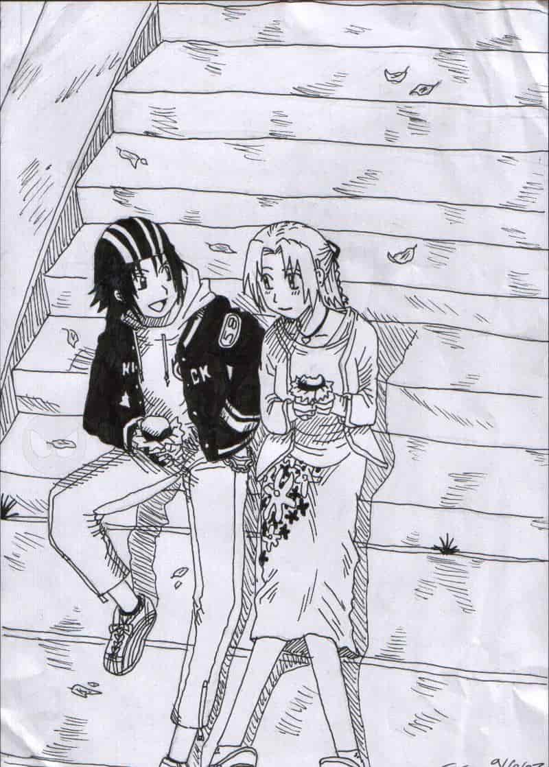Auf diesem Bild habe ich sasuke und sakura beim Esssen gemalt wie man unschwer erkennen kann. XD