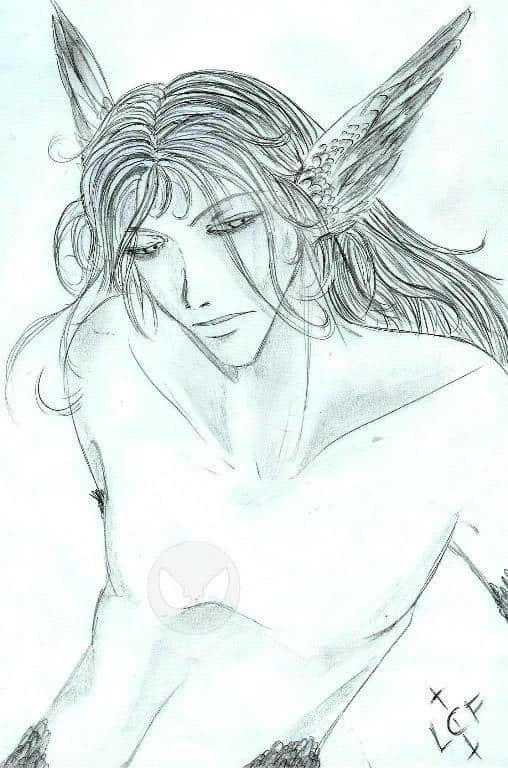 Das hier ist eine männliche Harpie. Er sieht ziemlich traurig aus - finde ich zumindest. Das kommt wohl... weil er bis jetzt das einzige Männchen ist *lach* Nun... Seine Arme sind auch gleichzeitig Flügel. Die kann aber auch unter der Haut verstecken (hab ich mir so gedacht)...