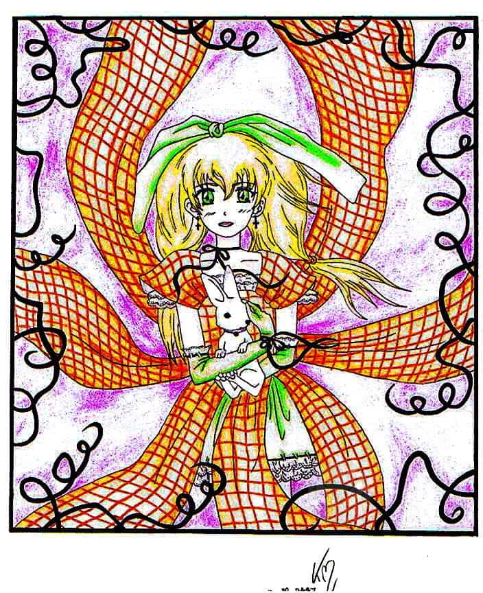 Ich hoffe mal die Farbkombination passt so einigermaßen, da hatte ich erst Zweifel. Denn für mich stand fest, dass ich auf jeden Fall den größten Teil des Kleides in orange Tönen machen wollte. Das machte ich dann auch und malte einfach mal so drauf los, ohne mir richtig Gedanken darüber zu machen wie ich den Rest gestalte. Erst dachte ich dann, ich mache die weiteren Teile in rot, jedoch gefiel mir das nicht so und ich entschied mich dann für grün.