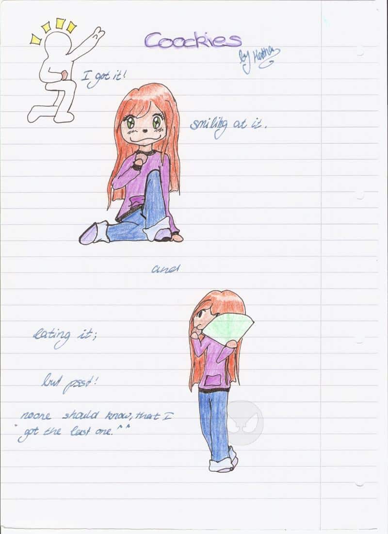 Also... Ja ist lamge her, dass ich mal was von mir hab hören lassen^^ Ein fettes sorry, an all meine Fans.... *ähm...jaaa* okay, ich hab vielleicht nicht viele, aber für die die es sind...^^Okay, also das bild heißt cookies. Es ist für alle die cookies lieben^^ Nya, ich hab das Pic gemalt, als ich gerade meine cookie-phase hatte. Ja, mehr gibts dazu net zu sagen bis auf: Danke pia, dassu mir mein pic hochgelanden hast hdl Kathaaaaaa