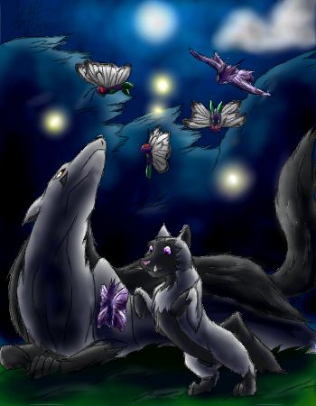 Jede Vollmondsnacht kam das Magnayen her, doch diesmal hatte es jemanden mitgebracht. Es war ihr kleines Fiffyen das nun zum ersten Mal kleine Insikten sah. Neugierig fragte es was das sei und die Mutter antwortete "Insekten", neugierig wiederholte das Kleine das Wort "Insegden?" und die Mutter msuste ein klein wenig lachen.