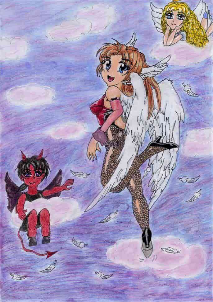 Die Outlines von dem großen Engel sind abgezeichnet (Manga Zeichenkurs), der Rest ist auf meinen Mist gewachsen.