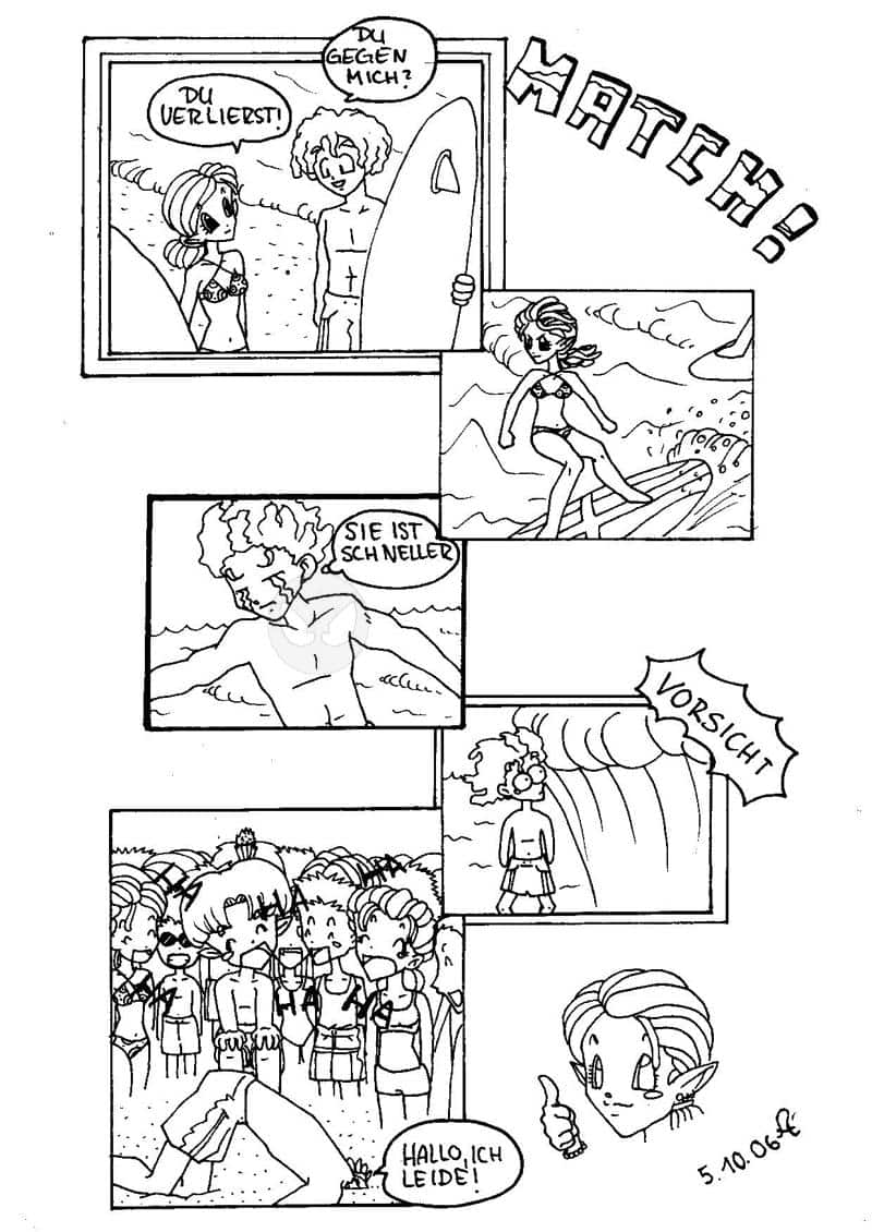 Ein weiteres Donnerstags Comic dessen Hauptfigut mir sehr gefallen, am geilsten finde ich den Blick von ihm als er die Welle hinter sich hat. mfg eure Amy
