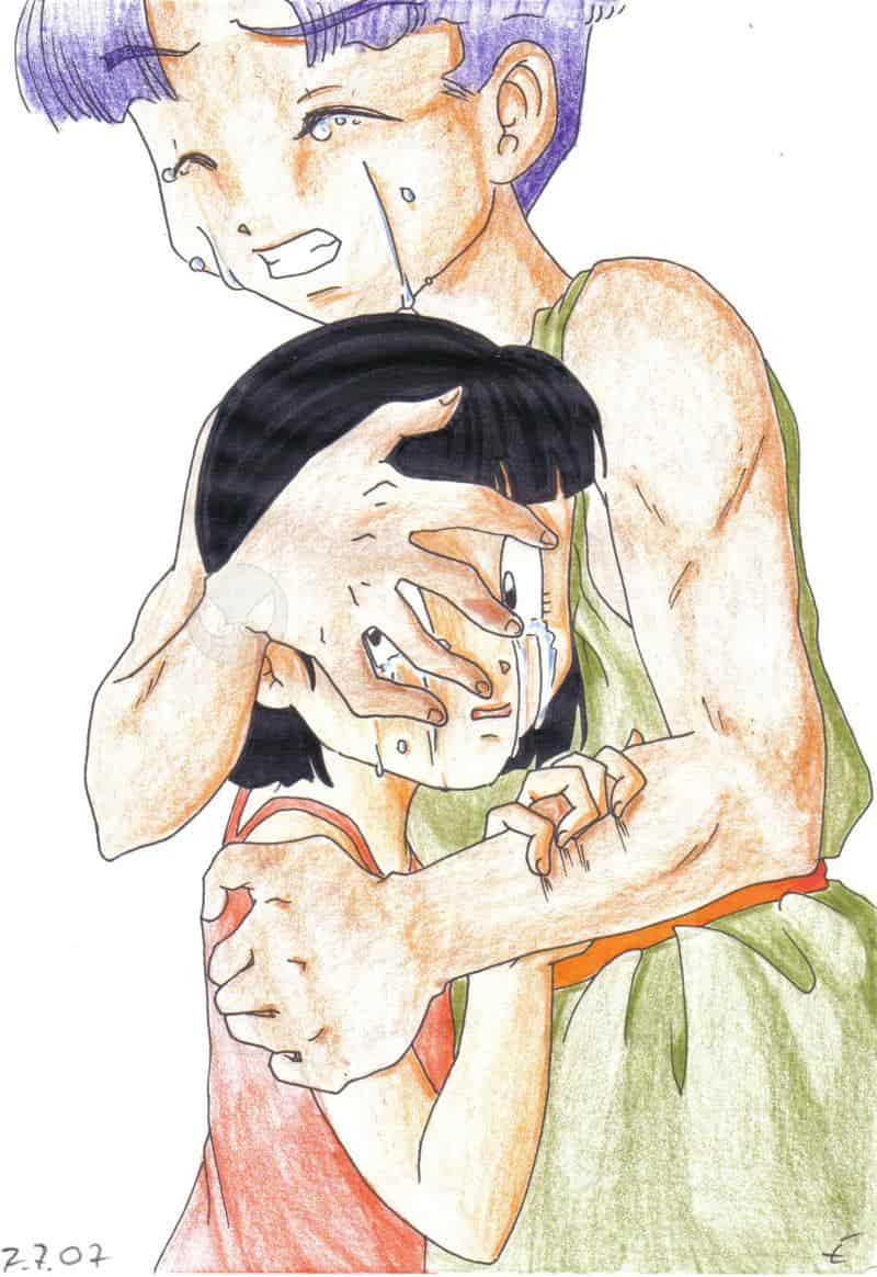 der titel sagt eigentlich schon alles. die beiden mussten mit ansehen wie son-gohan von c17 und c18 ermordet wurde. ein schock ganz klar, vorallem für son-gohans tochter pan...